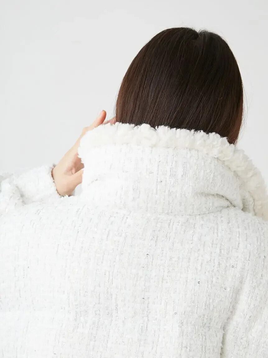 ツイードダウン Chaquetas es スタンドカラージャケット長袖 Ropa 暖かいコート秋冬ジャケット ロング オータム 秋物 ウィンター 冬物
