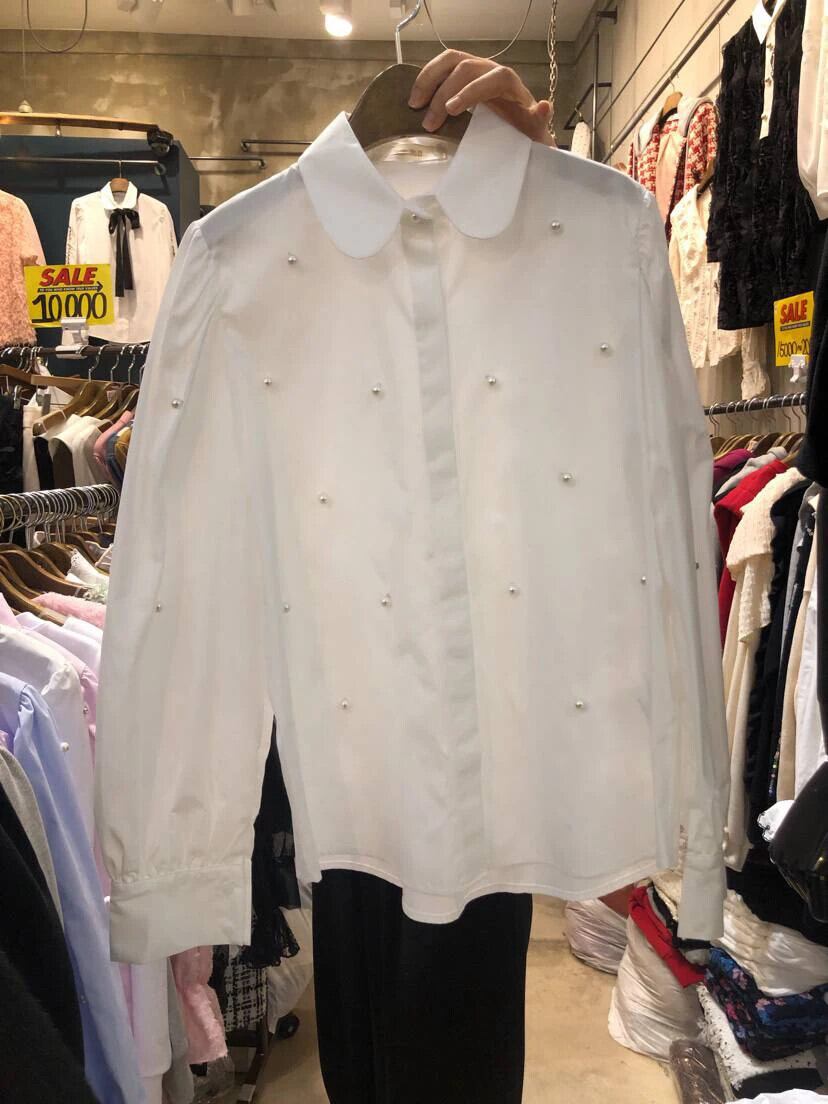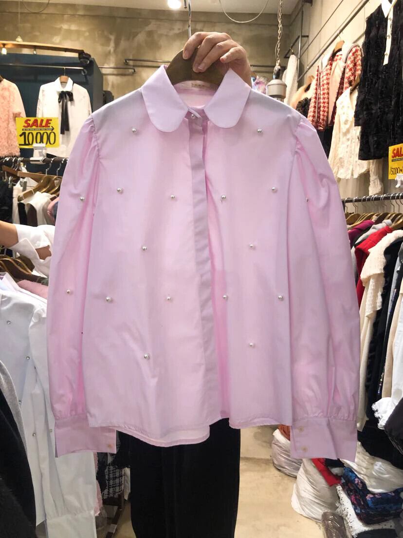 パッチワーク ビーズ シャツ ブラウス ラペル 長袖 秋 スイート ロパ くるみボタン シャツ トップス ロング レッド 大人ガーリー スウィート キュート カジュアル オータム 秋物 | eight