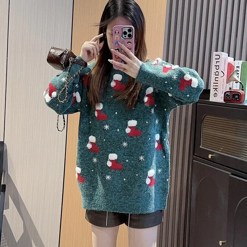 クリスマスセーター O ネック長袖 Ropa ルーズかわいいプルオーバートップス春秋レディースニット ロング 大人ガーリー スウィート キュート カジュアル スプリング 春物 オータム 秋物 Oネック | eight