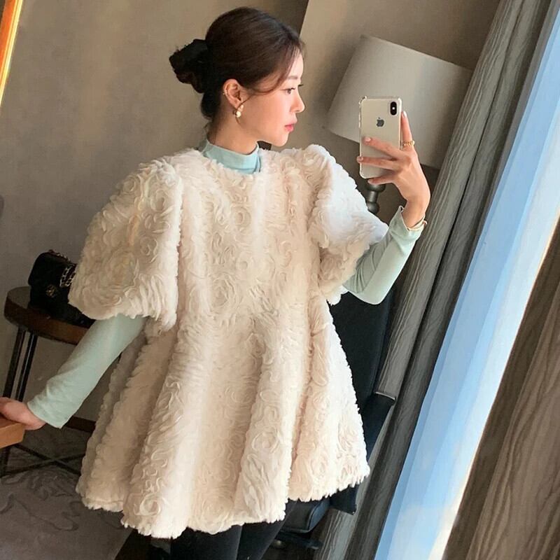 甘い 3d 花 Vestidos O ネックパフスリーブ Vestido シック Ropa チュニックドレス春夏ドレス 大人ガーリー スウィート キュート カジュアル スプリング 春物 サマー 夏物 花柄 Oネック | eight