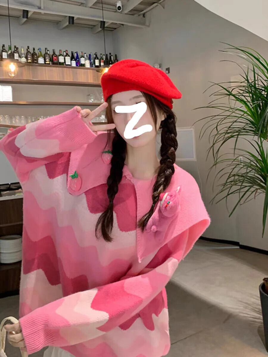 コントラストストライプセーター甘いピーターパンカラーロパルーズ長袖プルオーバー春秋レディースニット ロング 大人ガーリー スウィート キュート カジュアル スプリング 春物 オータム 秋物 | eight