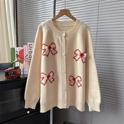 コントラスト リボン カーディガン スイート シングルブレスト セーター 長袖 ロパ O ネック ニット セーター デ ロング 大人ガーリー スウィート キュート カジュアル Oネック | eight