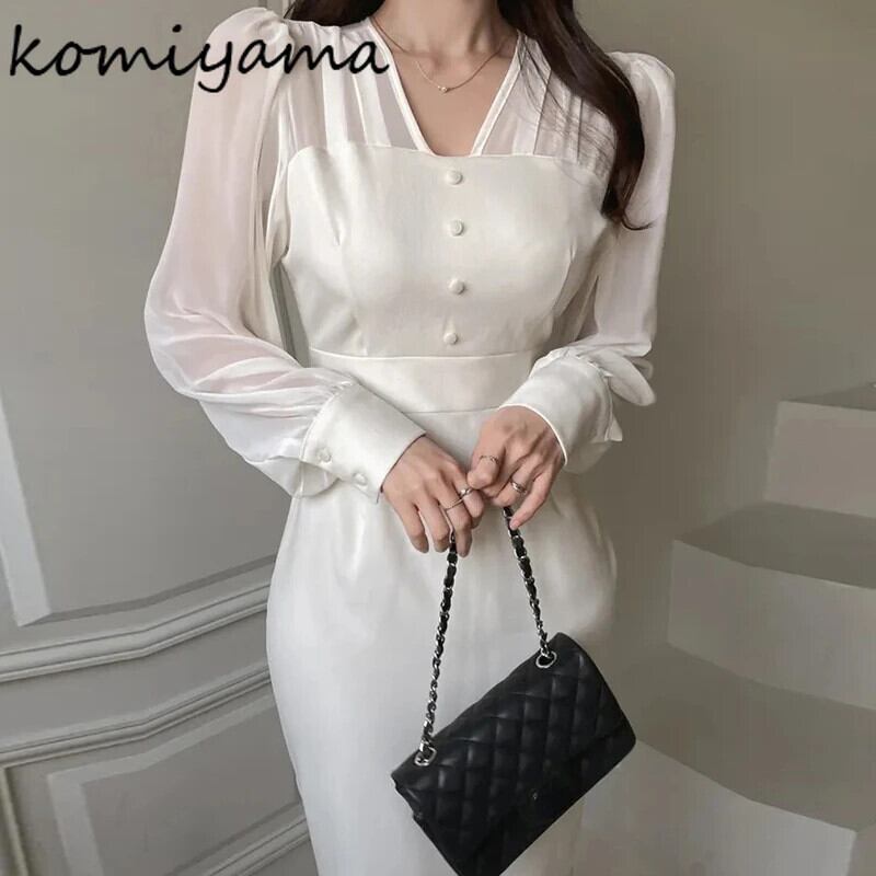 メッシュスプライス Vestidos Feminnino フィッシュテール Vestido ウエストボディコンマーメイド Ropa レースアップ弓ドレス春ドレス リボン スプリング 春物 | eight