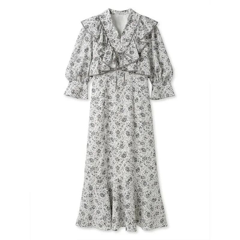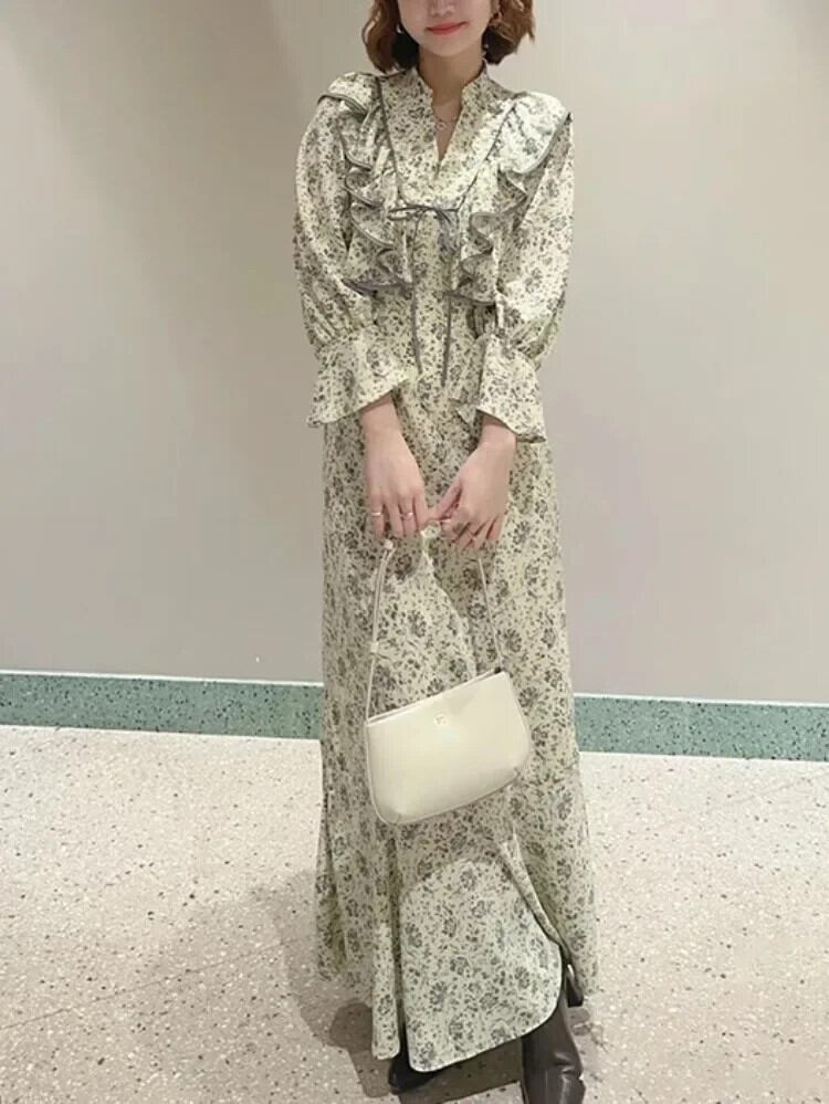 花柄 Vestidos フリル V ネック Vestido 春 2024 パフスリーブドレスチュニック Ropa レースアップボウドレス リボン ラッフル プリント スプリング 春物 Vネック | eight