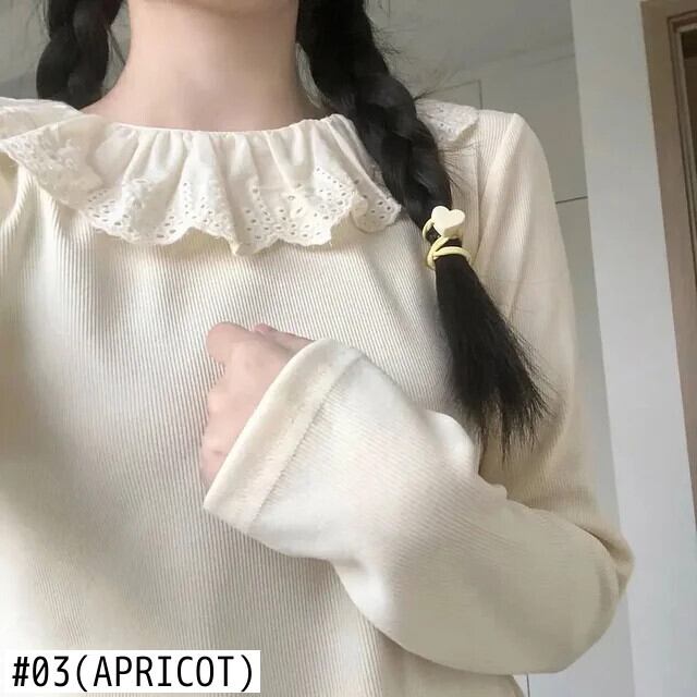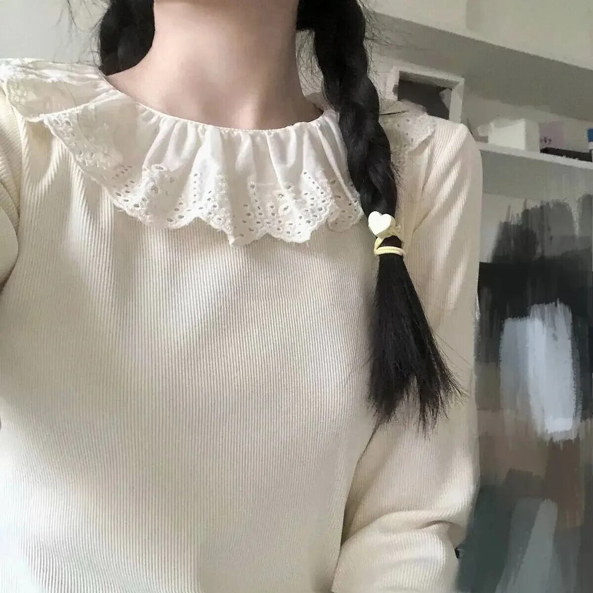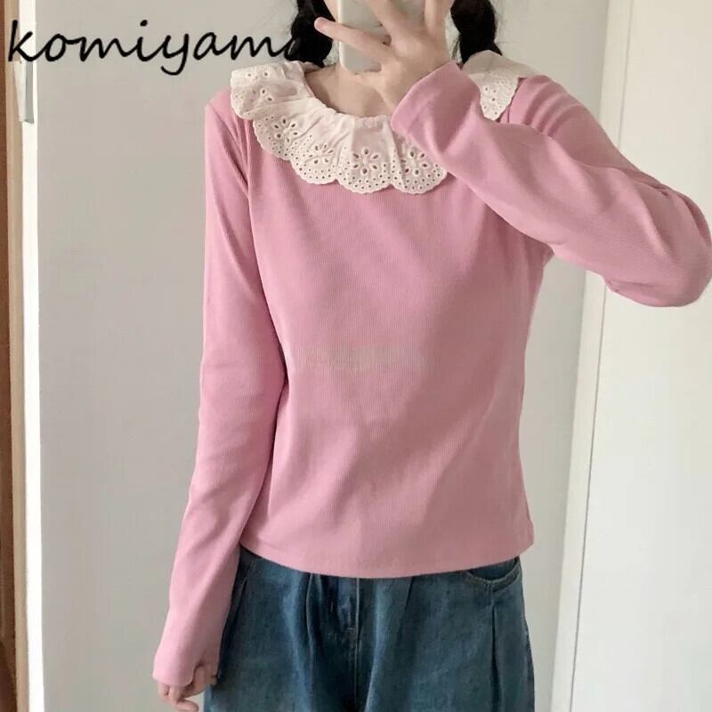 レースピーターパン襟 Ropa 長袖 Roupas コントラストトップス 2024 春底甘い Camisetas ロング 大人ガーリー スウィート キュート カジュアル スプリング 春物 | eight