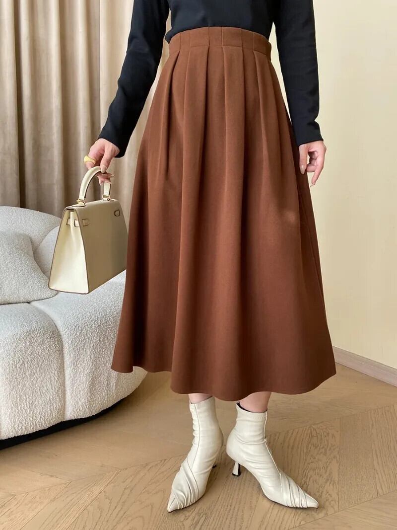 ウエスト A ライン ファルダス プリーツ スカート ジッパー スカート レディース オフィス レディー ロパ 秋冬 オータム 秋物 ウィンター 冬物 Aライン 会社 学校 通勤や通学にも | eight