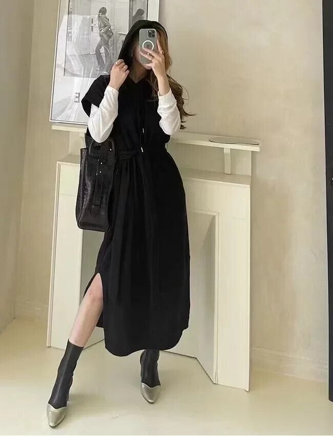 Feminino サイドスプリット Vestidos 春夏半袖ドレスレースアップウエスト Vestido フード付き Ropa ドレス ショート ハーフスリーブ スプリング 春物 サマー 夏物 | eight