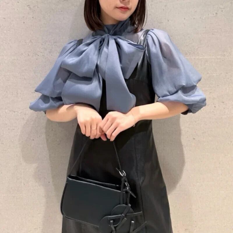 ese レースアップ ボウ パフ スリーブ シャツ ブラウス Sweet 2024 春夏 トップス Ropa リボン 大人ガーリー スウィート キュート カジュアル スプリング 春物 サマー 夏物 | eight
