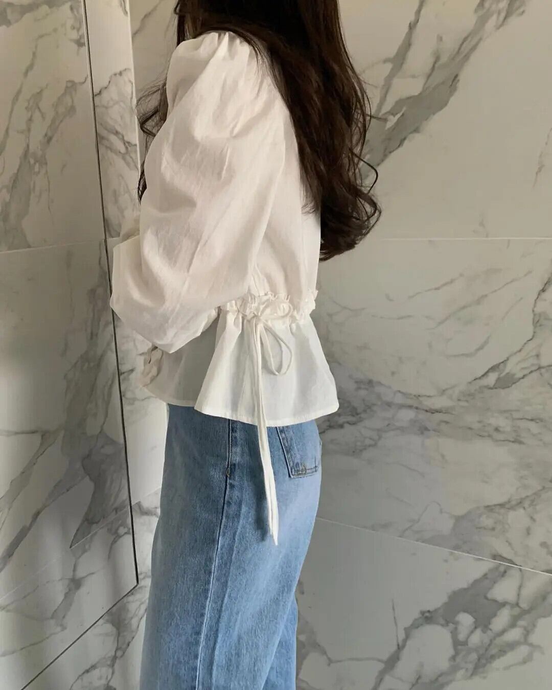 Sweet Fungus パッチワーク サイド レースアップ シャツ ブラウス チュニック 春 シングルブレスト トップス シック ロパ 大人ガーリー スウィート キュート カジュアル スプリング 春物 | eight