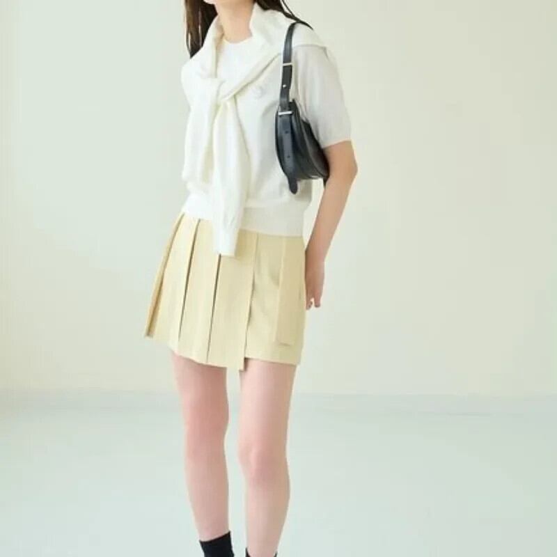 2024 ベルトプリーツ段段ファルダウエスト A ラインレディースショーツスカートミニスカートスタイル Ropa 春夏サイア スプリング 春物 サマー 夏物 ハーネス ブルマー Aライン | eight