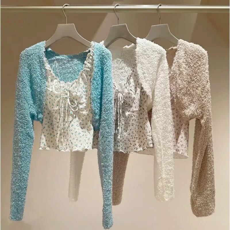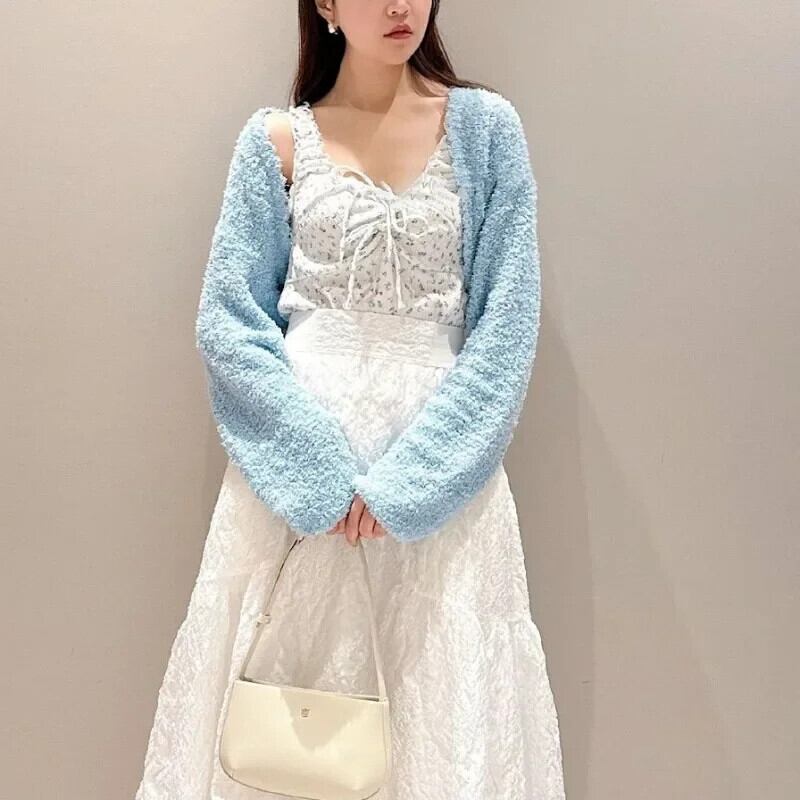 ese スーツフラワーレースアップボウスリングトップス + 長袖セーターカーディガン 2024 春夏甘い 2 点セット ロング リボン 大人ガーリー スウィート キュート カジュアル スプリング 春物 サマー 夏物 フラワーデザイン | eight
