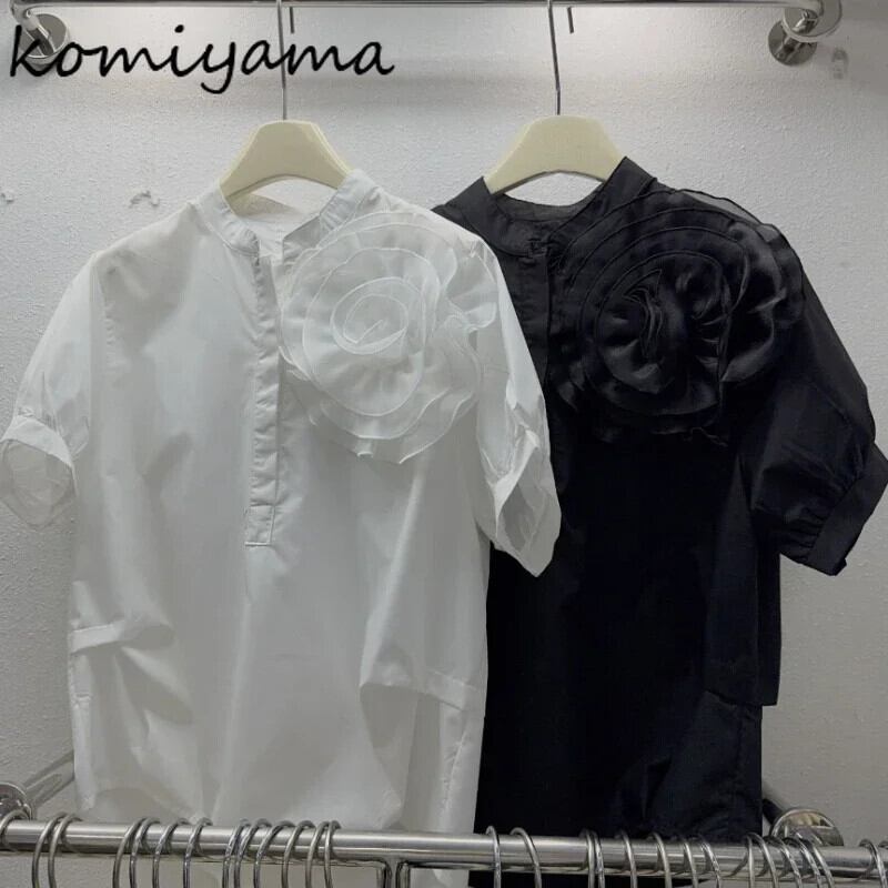スイートシック半袖ブラウスシャツスタンドカラーハーフボタンプルオーバートップ 2024 春夏ルーズロパ ショート ハーフスリーブ 大人ガーリー スウィート キュート カジュアル スプリング 春物 サマー 夏物 | eight
