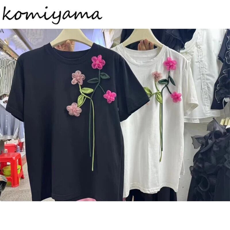 人格花 Ropa 2024 Loosewomen トップス Tシャツ半袖ラウンドネック Camisetas 夏スプライシング ショート ハーフスリーブ サマー 夏物 Oネック フラワーデザイン | eight
