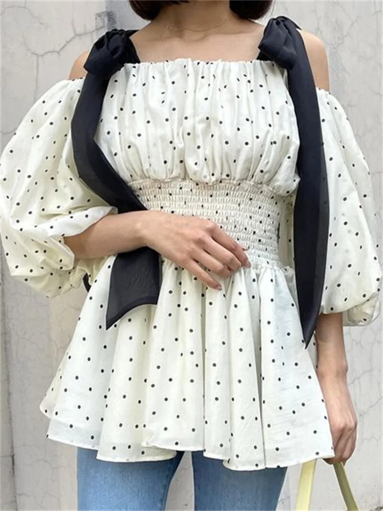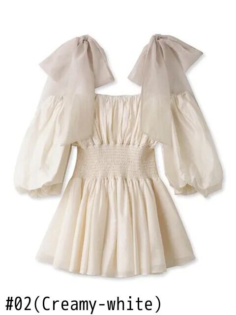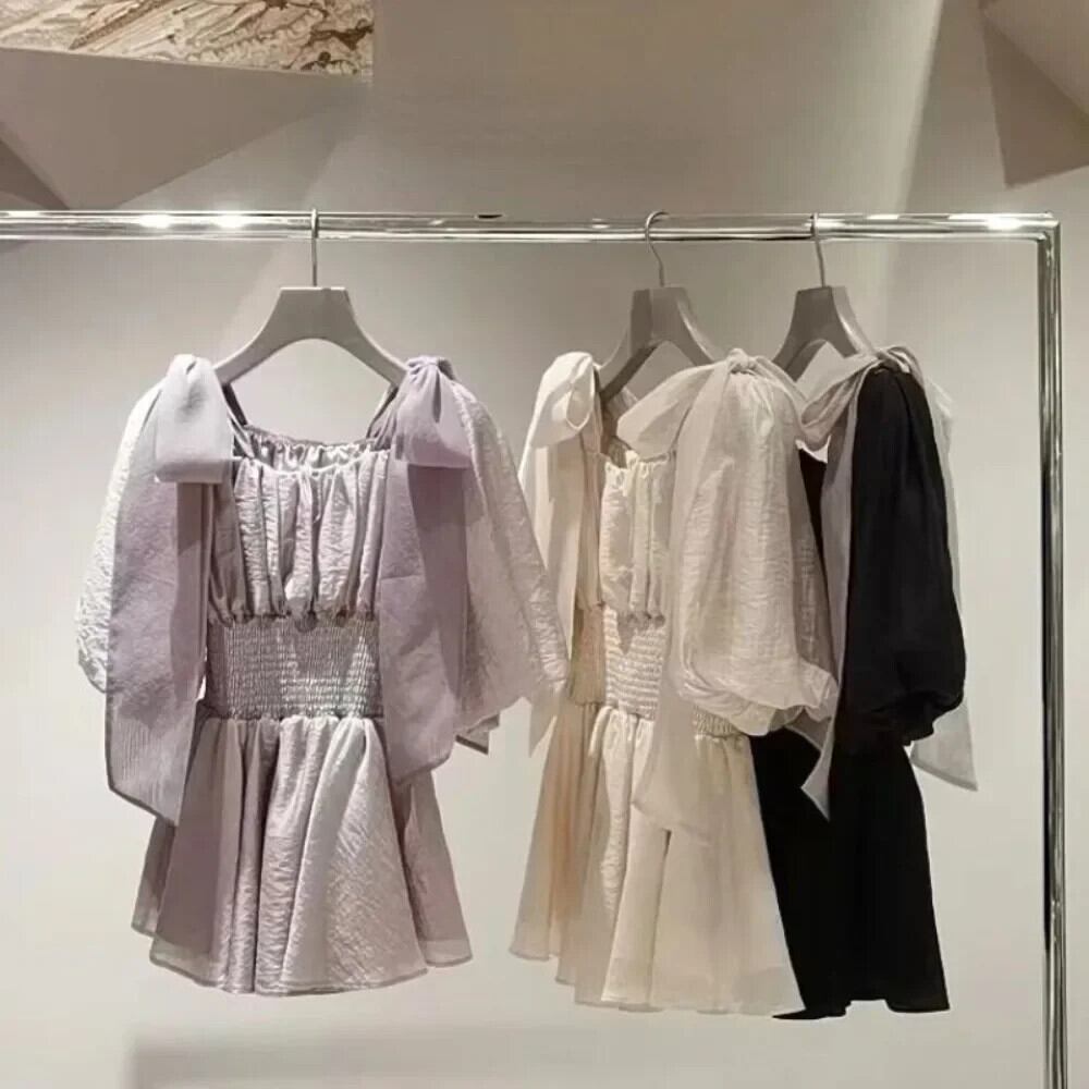 レースアップ弓ドレス Feminino スラッシュネックドレス 2024 春夏 Vestidos Vestido 甘いチュニック Ropa リボン 大人ガーリー スウィート キュート カジュアル スプリング 春物 サマー 夏物 | eight