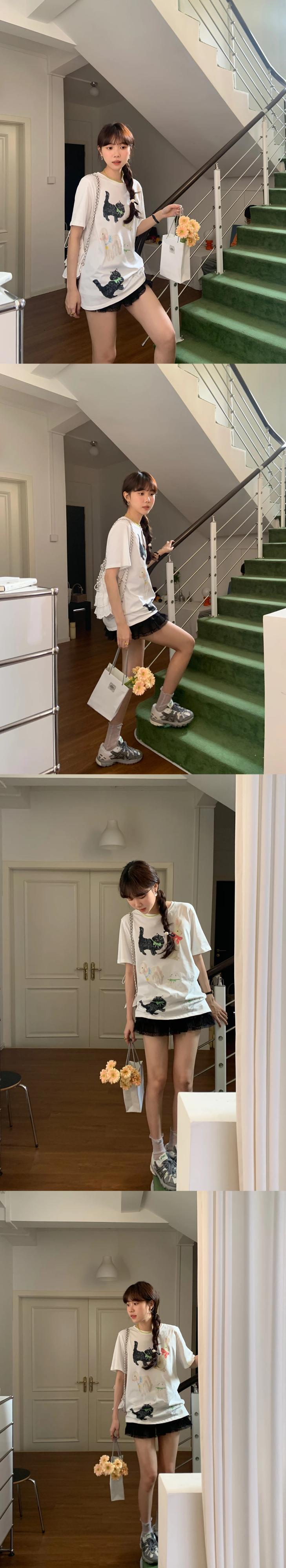 面白い漫画猫ウサギプリント Ropa コントラスト Camisetas O ネック半袖トップス夏 Tシャツ緩い甘い ショート ハーフスリーブ 大人ガーリー スウィート キュート カジュアル サマー 夏物 Oネック | eight