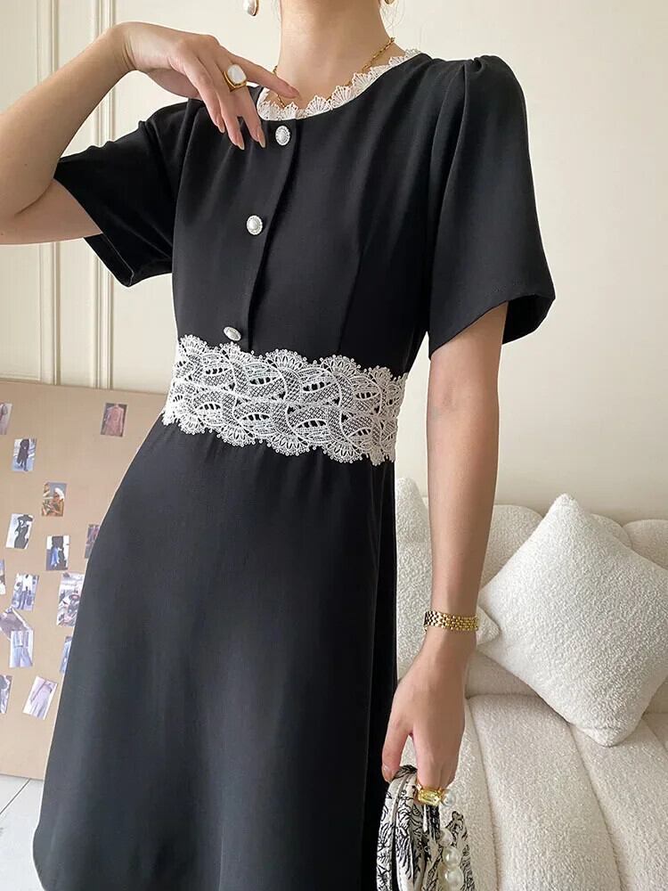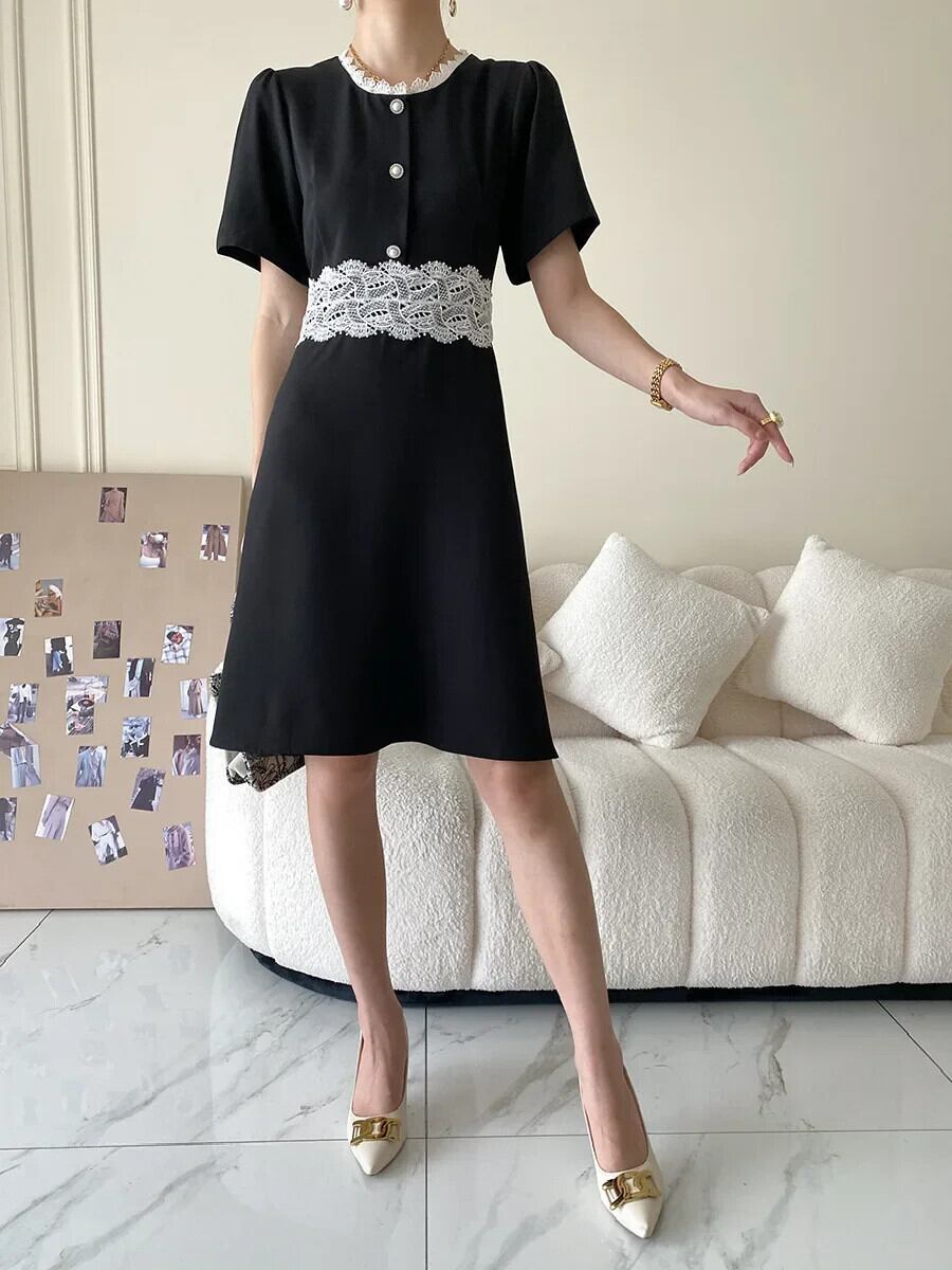 レースチュニック Vestidos 春夏ドレスラウンドネック半袖 Vestido 高度センス Ropa 2024 ドレス ショート ハーフスリーブ スプリング 春物 サマー 夏物 Oネック | eight