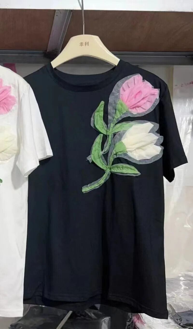 ヒットカラースプライシングフラワー Ropa ラウンドネック半袖 Camisetas 夏 2024 トップスルーズ Tシャツスイートシック ショート ハーフスリーブ 大人ガーリー スウィート キュート カジュアル サマー 夏物 Oネック フラワーデザイン | eight