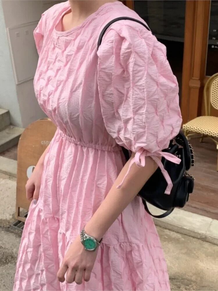 チュニックドレスラウンドネックパフ半袖 Vestidos A ラインドレス 2024 夏 Vestido アーガイルシャーリング Ropa ショート ハーフスリーブ サマー 夏物 Oネック Aライン | eight