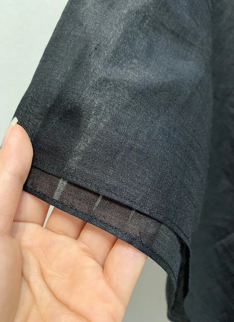 洗濯で取れるような汚れや簡単に直せる程度のボタンの緩み、縫製の歪み、シワ、多少のほつれなどは(クレーム対象外)になりますので、予めご了承ください。