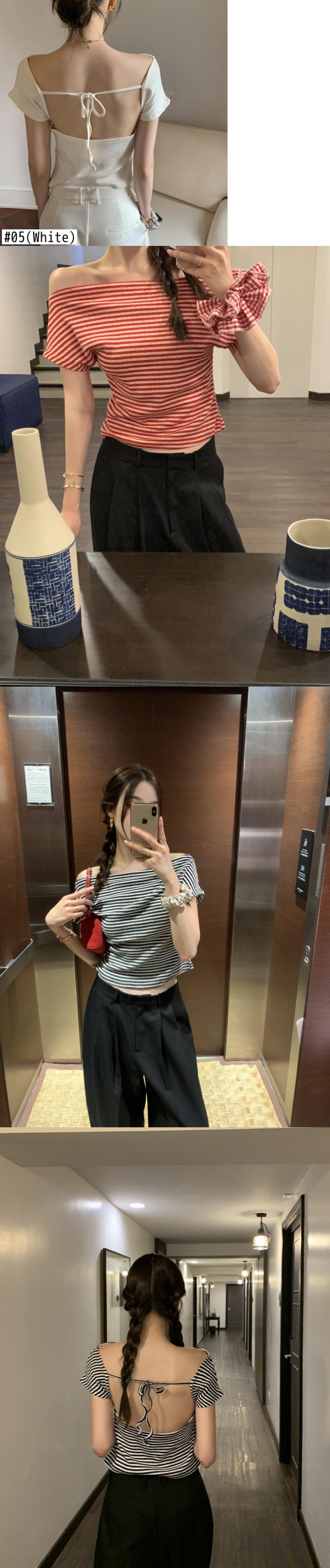 バックレスレースアップ弓 Ropa 半袖 Camisetas スラッシュネック 2024 トップス夏 Tシャツ Feminino Tシャツ ショート リボン ハーフスリーブ サマー 夏物 | eight