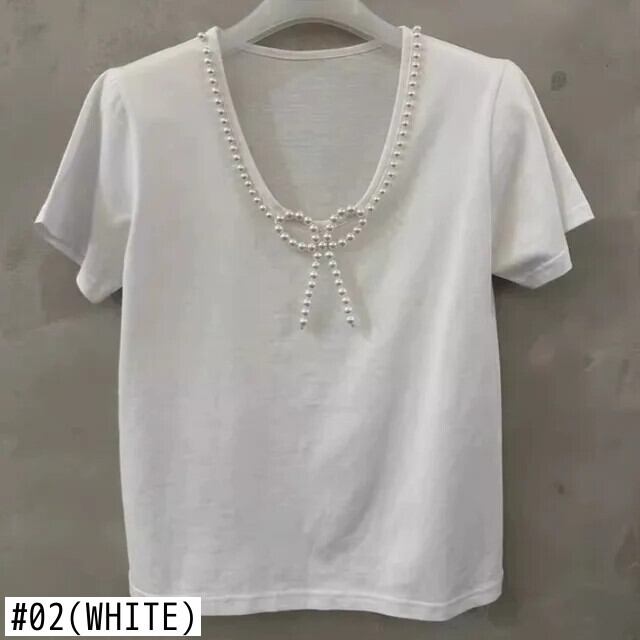 ische schicke Perlen Bogen Ropa Kurzarm Camisetas loss lässige Frauen 2024 トップス süßes T シャツ Sommer neue Kleidung Tシャツ | eight