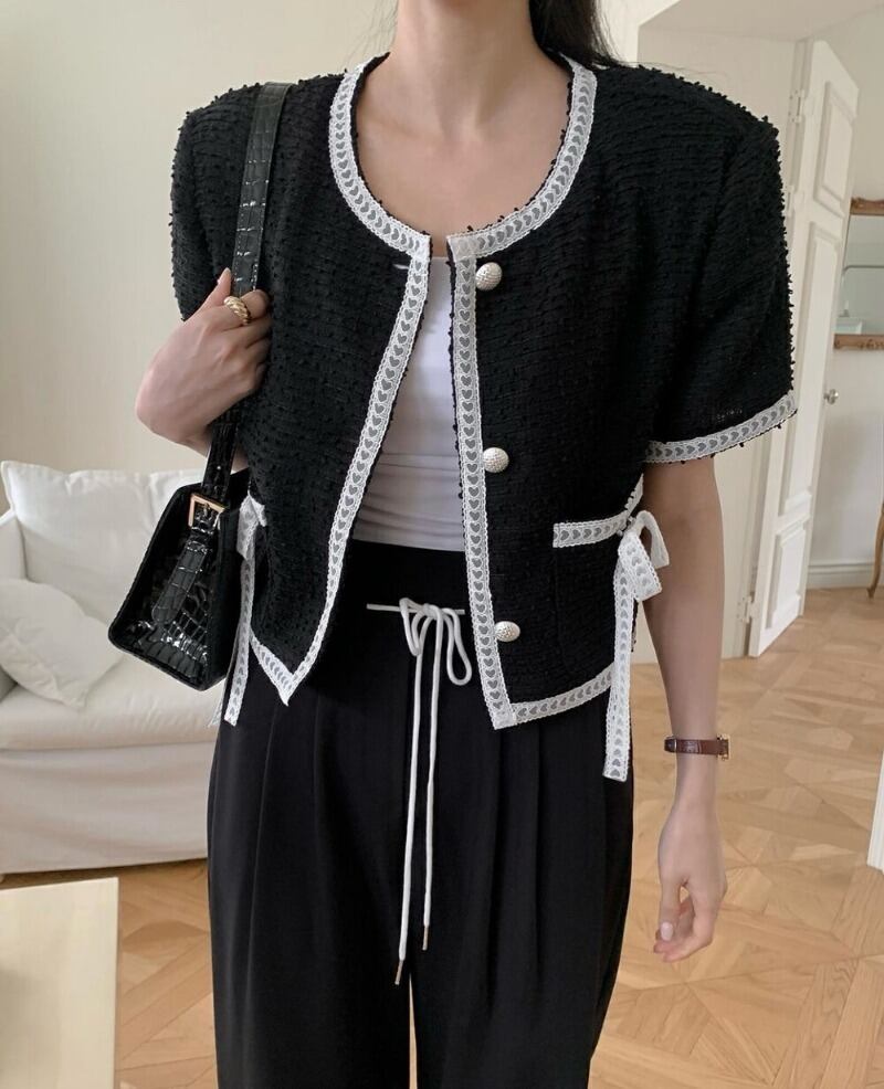 ヒット カラー ハート Ropa Strik Dubbele Zakken Chaqueta es Losse O-hals Jas Vrouw Korte Mouw Jasjes Outwears | eight