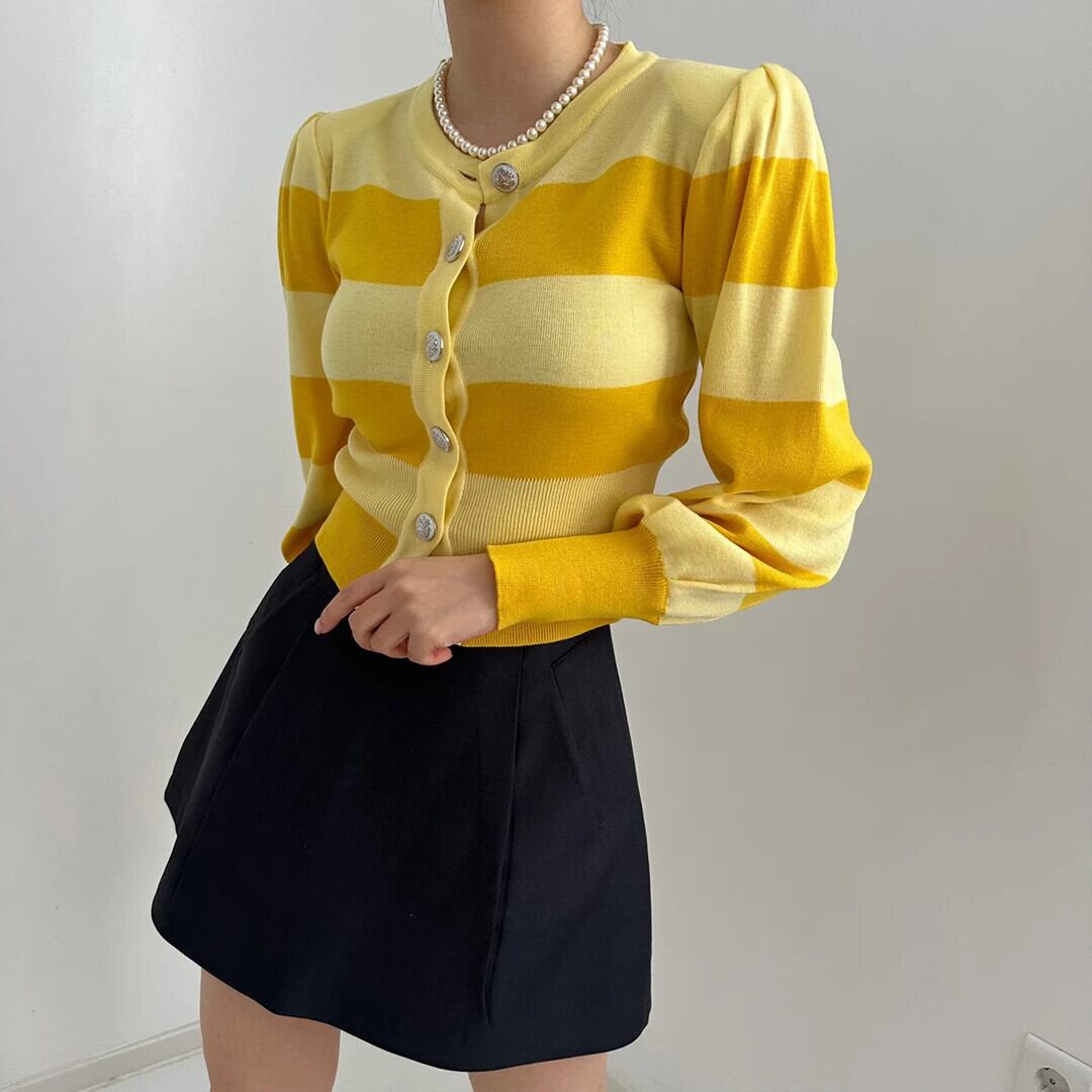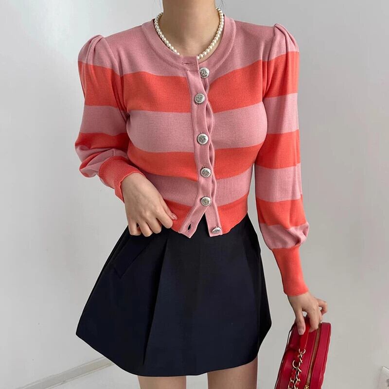 Kontrastst reifen Strickjacke Einreiher Ropa O-Ausschnitt Langarm Oberbekleidung 2024 Frau Sueteres Herbst süße Strickjacken | eight