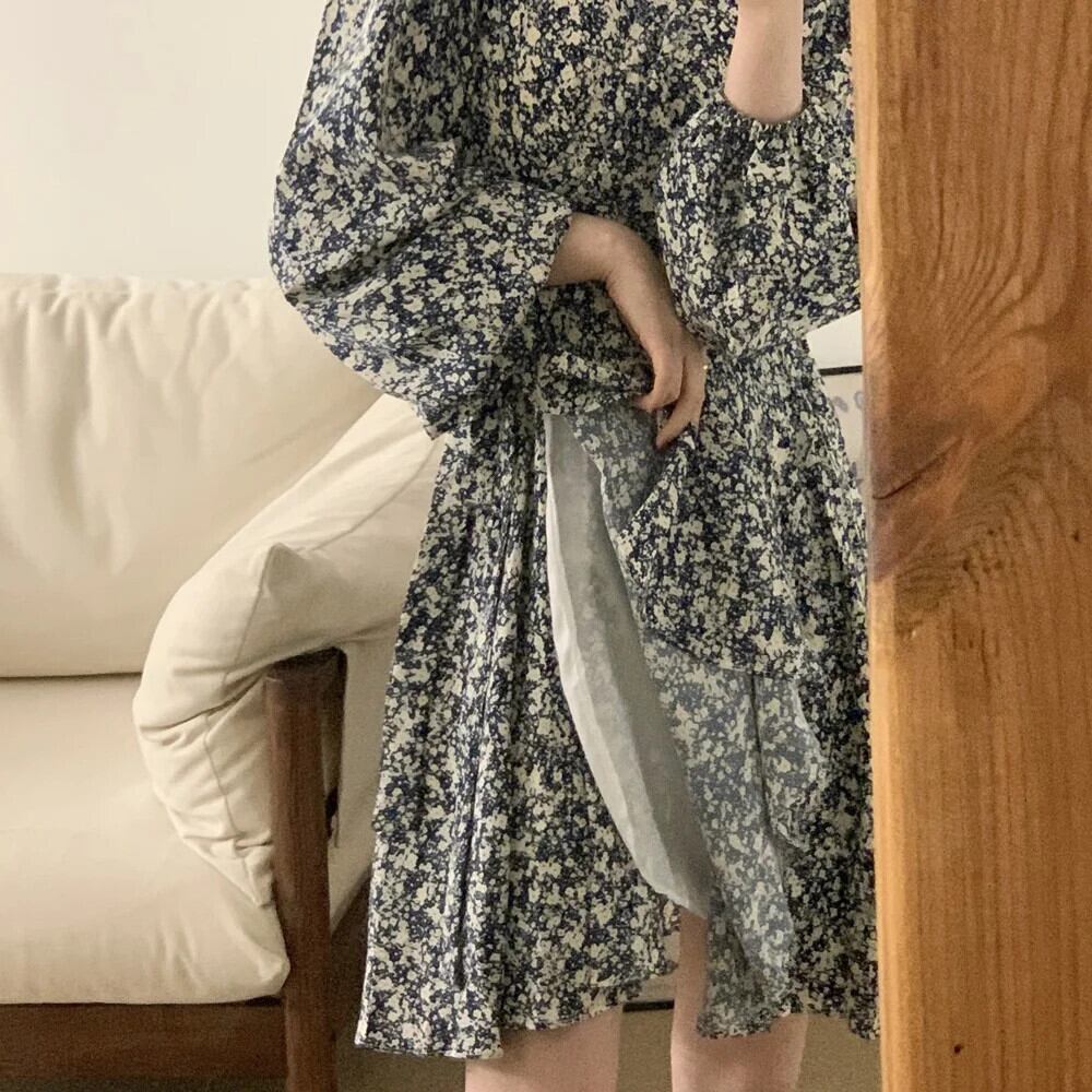 ische schicke Schnür tunika Vestidos gebrochene Blumen Frauen kleider V-Ausschnitt Langarm Kleid Temperament Vestido 2024 Roben | eight