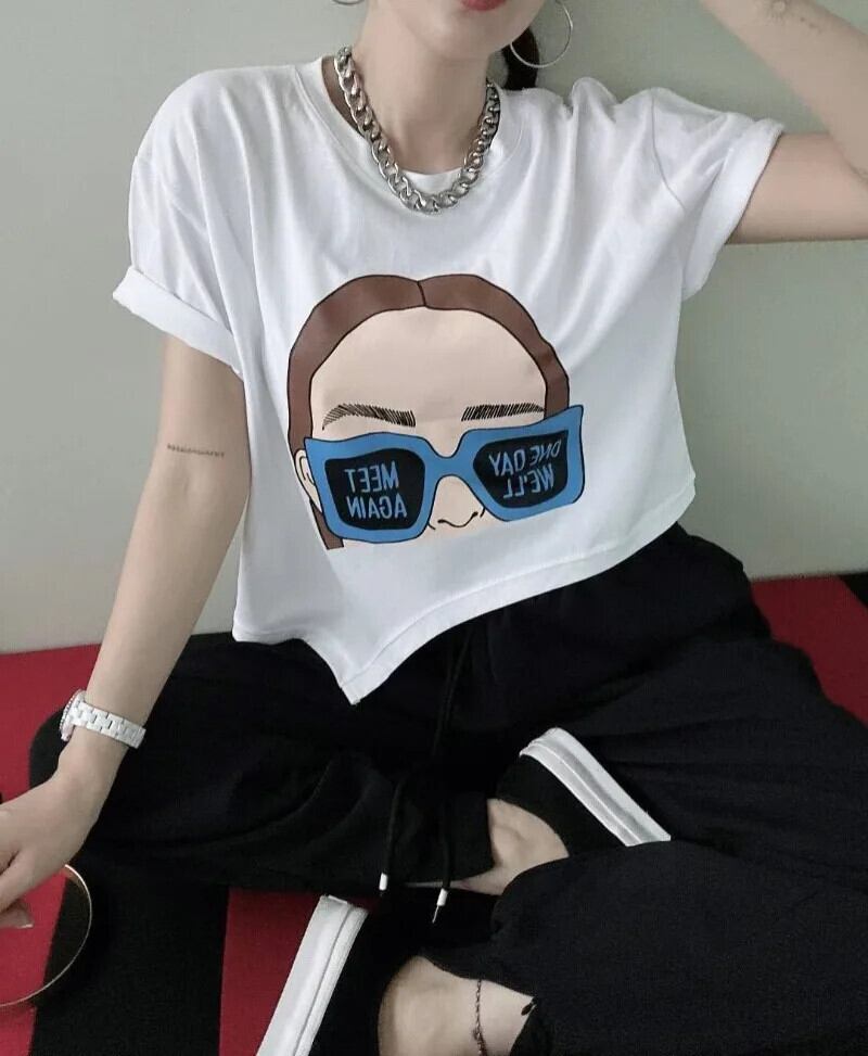 Persoonlijkheid レタープリント Ropa Korte Mouwen Camisetas Zomer Nieuwe Dames 2024 トップス Losse Ronde Hals Tシャツ Onregelmatige Tシャツ | eight