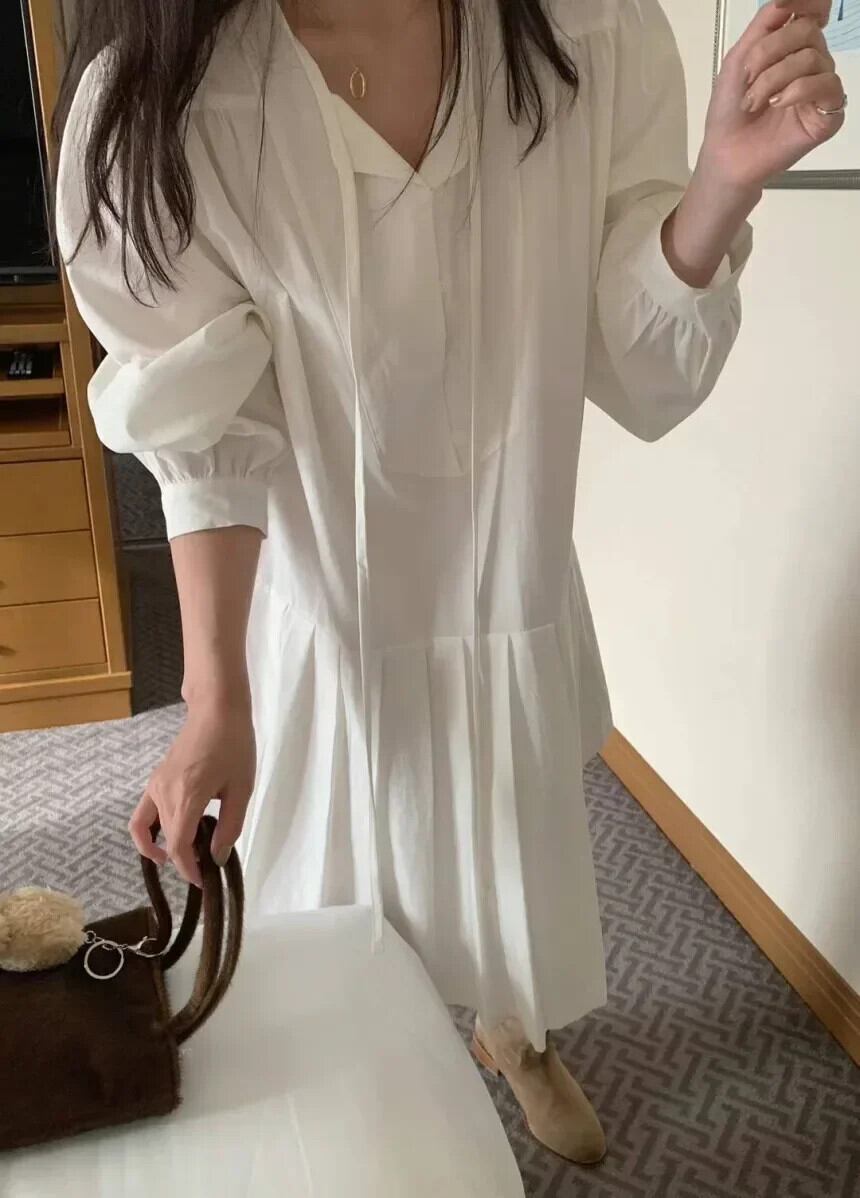 Plissee Saum Vestidos V-ausschnitt Langarm Frauen Kleider Lose Beiläufige Kleid Temperament Vestido 2024 ischen Stil Roben | eight