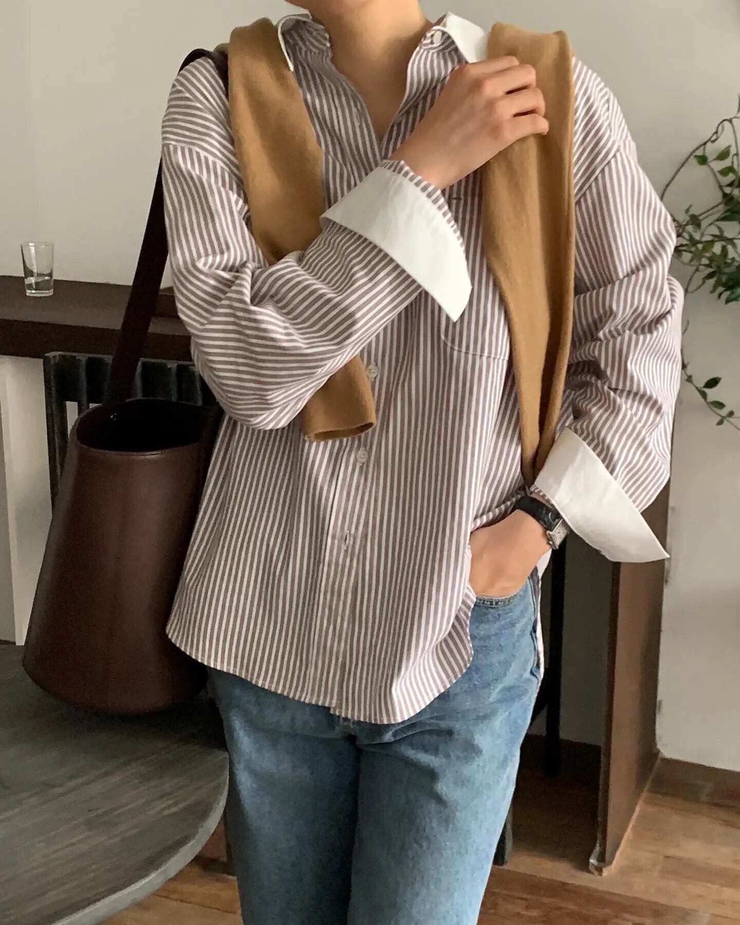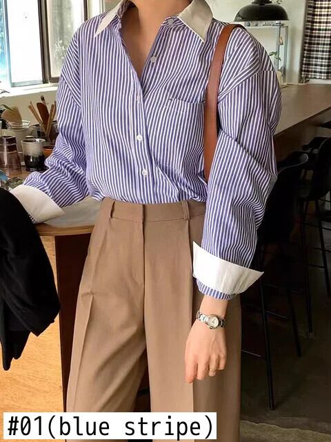 ヒットカラー ストリープ シャツ & ブラウス シングルブレスト Blusa 'S Lange Mouw Ropa Vrouw 2024 Nieuwe Hemdjes Losse Blusa | eight